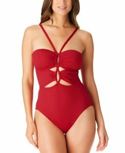 Seaside style can be a little glamorous when you pull on this Bar III swimsuit, featuring pretty cutouts and gathering.