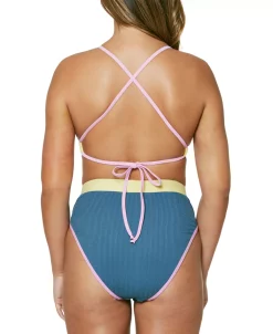 Make waves in Jessica Simpson’s triangle bikini top, featuring a full-support design.