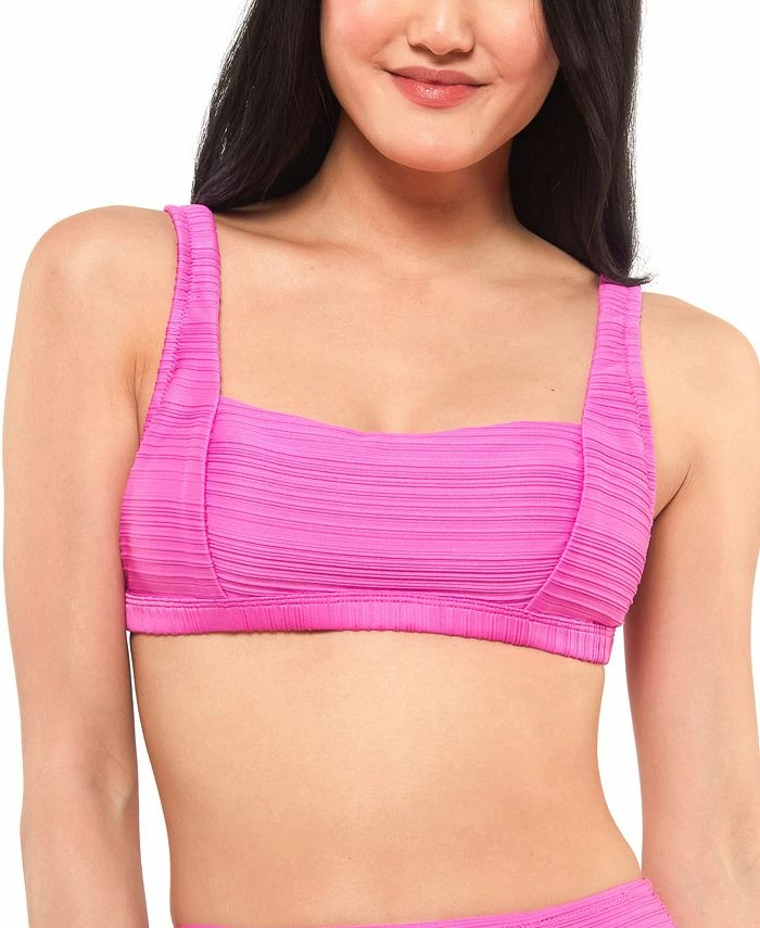 Retro inspiration makes this ribbed texture bikini top from Jessica Simpson easy to wear.