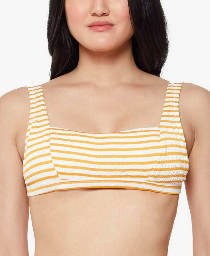 Go for retro-inspired fun in the sun with this Jessica Simpson bikini top, a classic that updates timeless stripes with sleek texture.