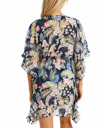 Cover up your swim style with this breezy cover-up from Jessica Simpson, a tropical floral-print design trimmed with romantic ruffles at the sides.