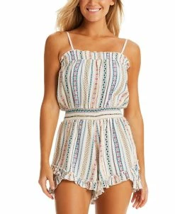 Take your look surfside to boardwalk in the Stripe It Up cover-up romper from Jessica Simpson.