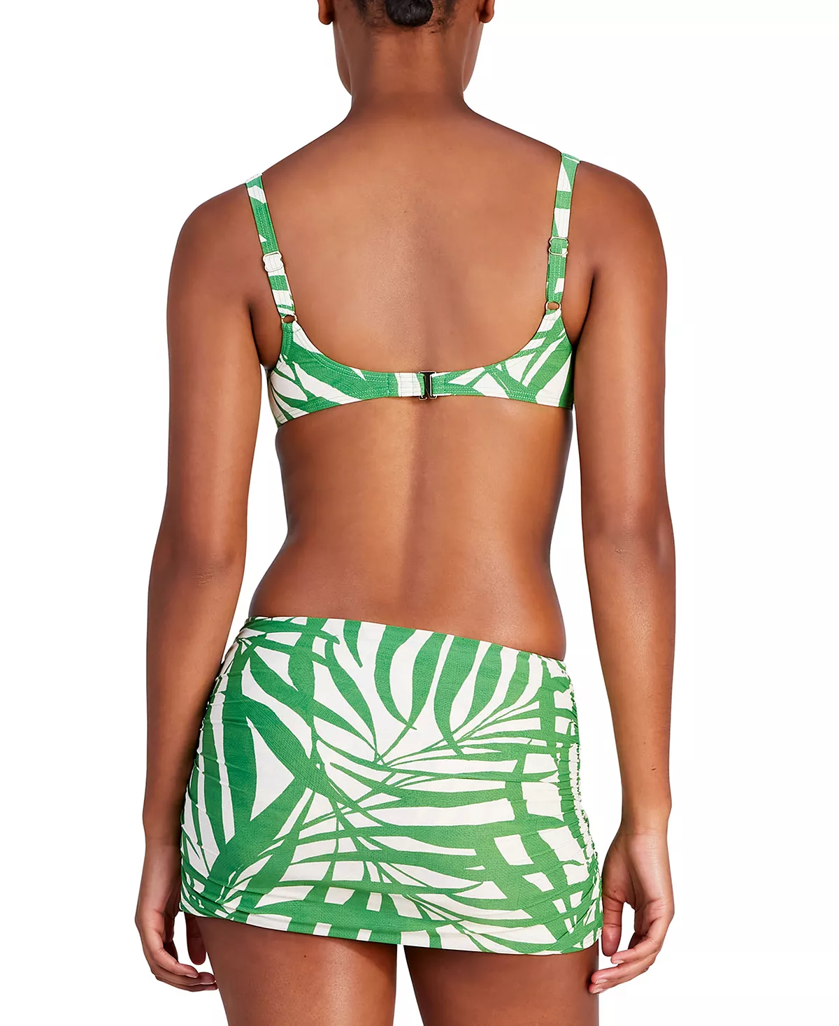 Palms and paradise are closer than you think with this printed design on the shirred bikini top and skirt overlay bottoms from Kate Spade, bringing you on step closer to a tropical destination the next time you relax poolside.