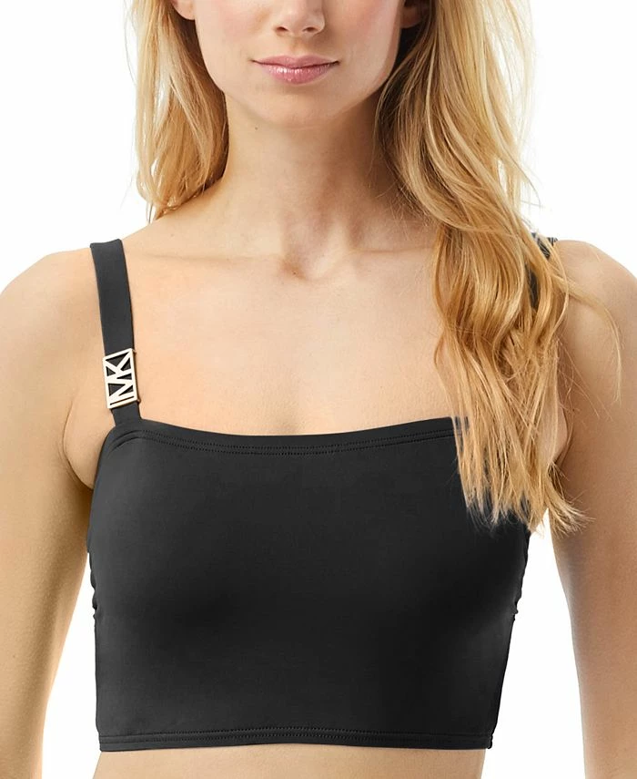 Gleaming logos add sophistication to this Michael Michael Kors bikini top. Its longer line is understated and stylish.