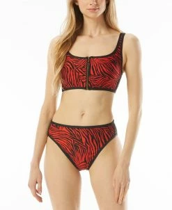 MICHAEL Michael Kors’ two-piece swim look pairs an animal-print zip-up top with matching bottoms.