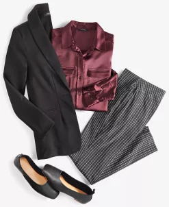 Alfani Women’s Satin Utility Blouse & Straight-Leg Pants, Created For Macy’s