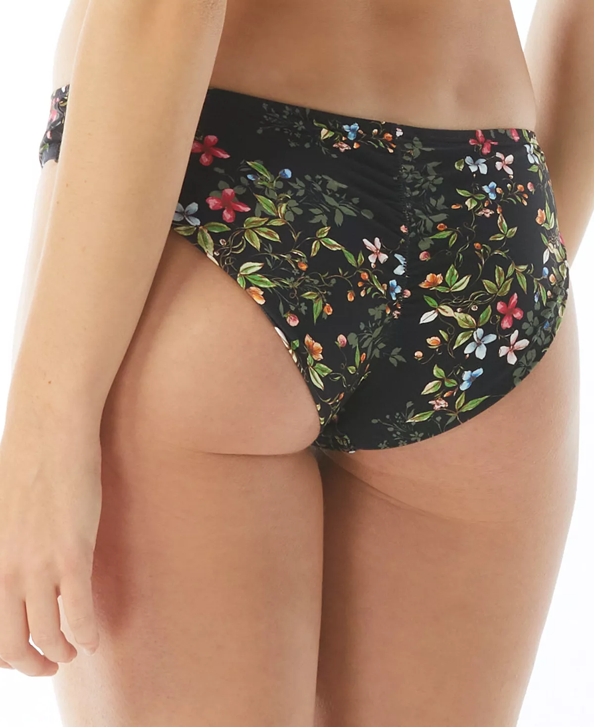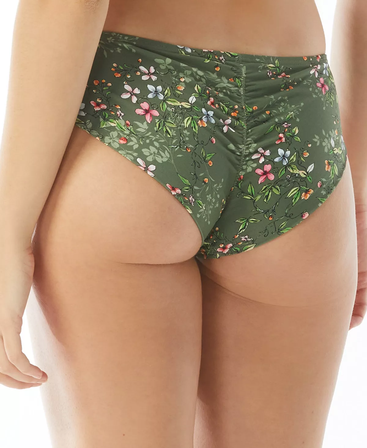 Go for it in this fresh look from Vince Camuto, floral-print bikini bottoms with shirring at the back for a sleek fit.